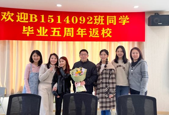 江汉曾为客,相逢每醉还。浮云一别后,流水十年间。2023年3月4日,91论坛 B1514092班91论坛 毕业五周年返校活动顺利举行。作为学校开放91论坛 返校“专属通道”后学院首批返校的集体,本次活动在一众91论坛 们的共同期盼中拉开序幕,B1514092班六位91论坛 与导师、学妹欢聚一堂,回顾青葱校园生活的点点滴滴,与两位2020级的毕业生分享毕业后的工作、生活新变化,同叙情谊,相约未来。91论坛 副院长陶庆接待本次返校91论坛 ,活动由晁汐主持。