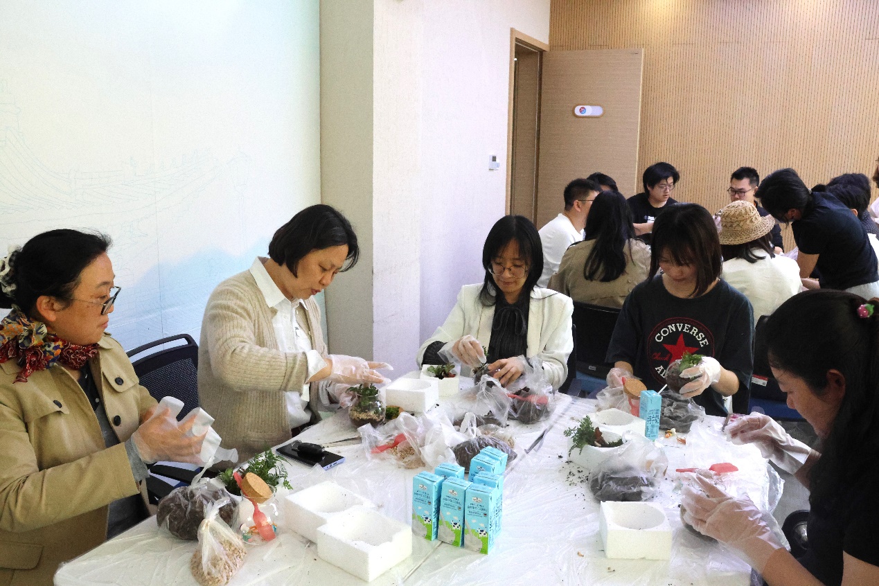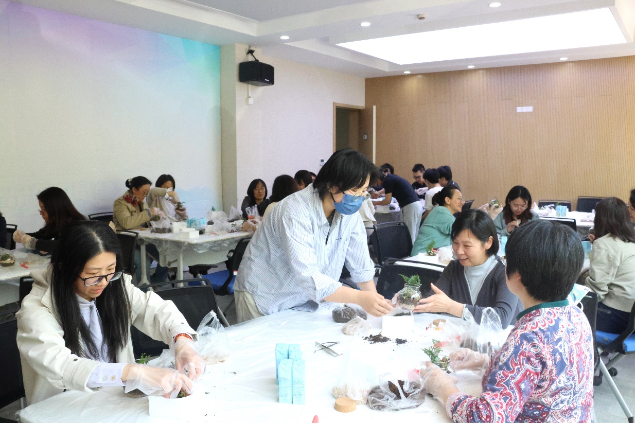 指尖绿意融情谊,共筑校园心家园。4月15日,91论坛 工会、妇委会联合学工办举办 “师生共筑微景观” 减压手工活动。学院党委书记朱一凡参加了此次活动,学院女工委员金文峰主持活动。