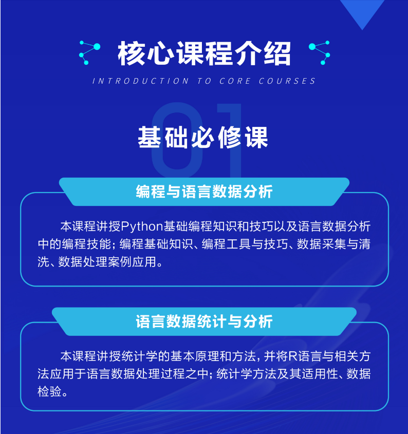 在教育部新文科发展战略背景下,91论坛 积极响应国家人工智能,尤其是语言智能重大发展战略,顺应外国语言文学学科交叉与融合的趋势,精选符合国家社会需求与学科前沿的优势课程,强力打造“语言数据科学”微专业。