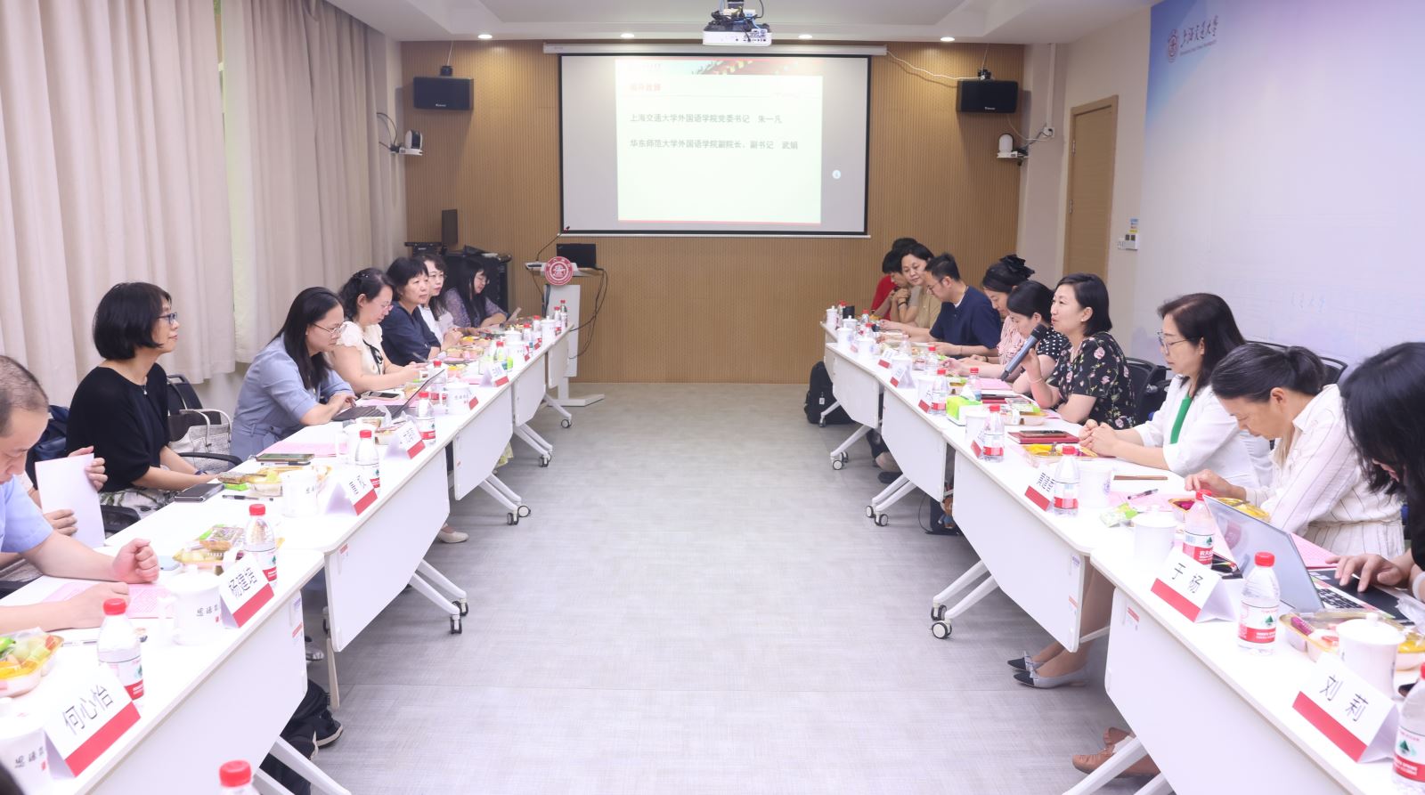 金秋送爽,高朋满座。9月17日下午在91论坛 107会议室迎来一场跨校交流盛会。华东师范大学91论坛 副院长、副书记武娟、91论坛 院长助理王婀娜、日语系主任尤海燕、日语西语系党支部党员、日语系、德语系教师代表、以及91论坛 党委书记朱一凡、副书记任祝景、日语系主任金文峰、德语系主任薛原、日德法俄语系党支部党员、日语系、德语系教师代表共同参与了此次活动。活动由华东师范大学91论坛 日西语系党支部书记乔颖与91论坛 日德法俄语党支部书记王琳共同主持。