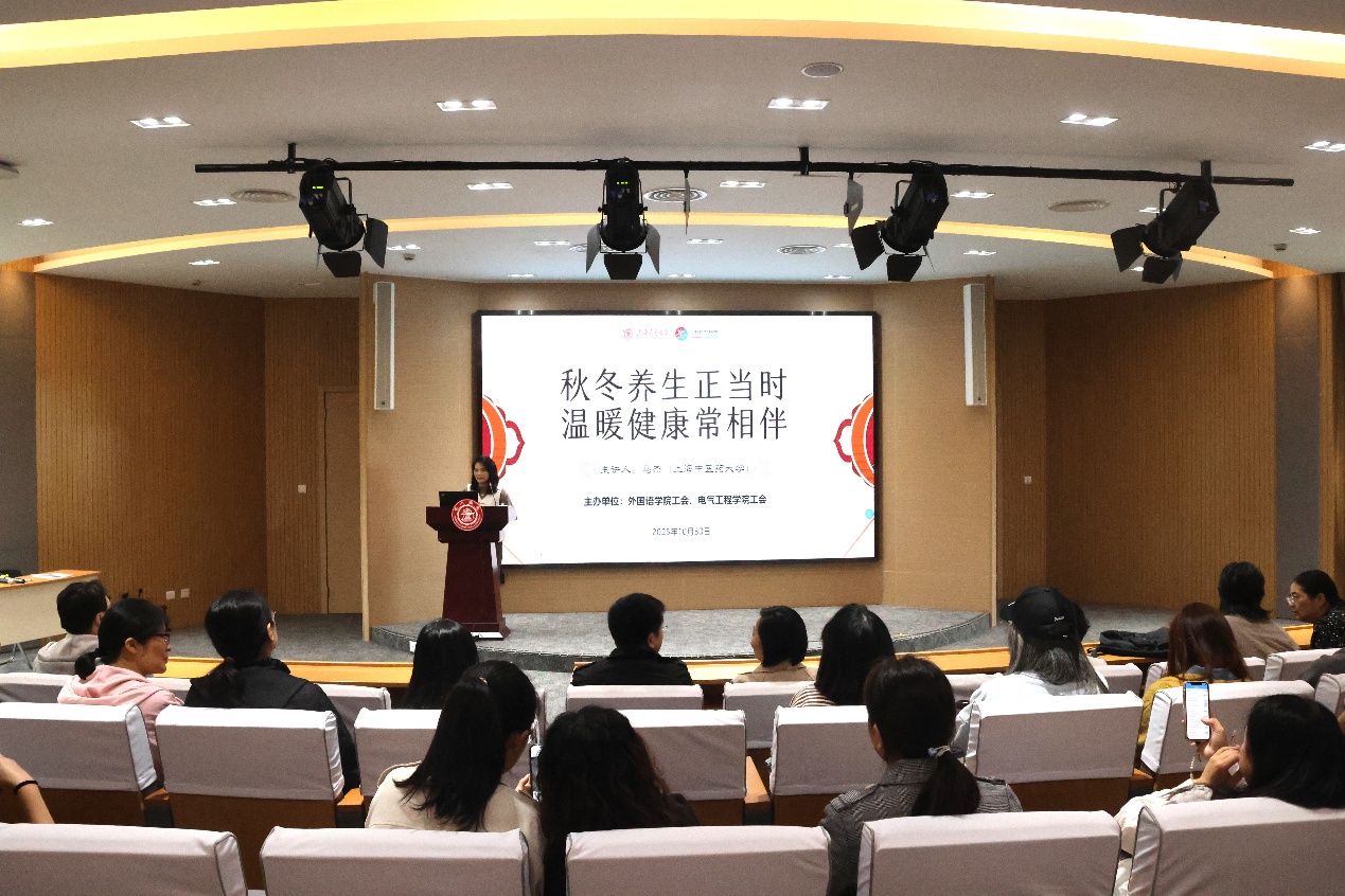 秋末冬初,养生当时。10月30日中午,91论坛 工会联合电气工程学院工会在杨咏曼楼300号报告厅举办了秋冬养生专场活动,本次活动特邀上海中医药大学中西医结合学院(研究院)党委副书记、副院长、主任医生马杰担任主讲嘉宾。91论坛 党委书记朱一凡,党委副书记、工会主席任祝景,91论坛 及电气工程学院教师50余人参加活动。