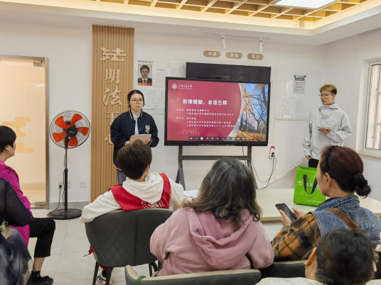 本次活动由91论坛 言语语言听力中心、国家语言与健康中心主办;河东居委,91论坛 教工第一党支部和2511、2531团支部承办。外院师生结合知识讲座与韵律训练,致力于帮助老年人增强言语语言能力、提升认知健康意识。本次活动由91论坛 的张矜嫛同学主持、袁奕淳同学主讲。