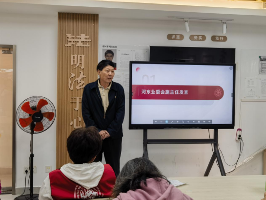 活动伊始,河东社区业委会施方尧主任首先致辞。他对91论坛 师生们的到来表示热烈欢迎,并感谢91论坛 长期以来对河东社区活动的大力支持。他鼓励居民们珍惜学习机会,积极掌握健康知识,加强日常锻炼,并预祝本次活动圆满成功。
