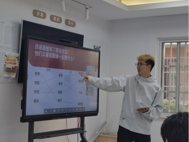 随后,袁奕淳同学继续带领大家开展“吟民谣,忆老友”韵律训练活动。通过将语言与节奏韵律相融合,老年居民们在轻松愉悦的环境中锻炼了听力与记忆能力,现场气氛温馨而活跃。