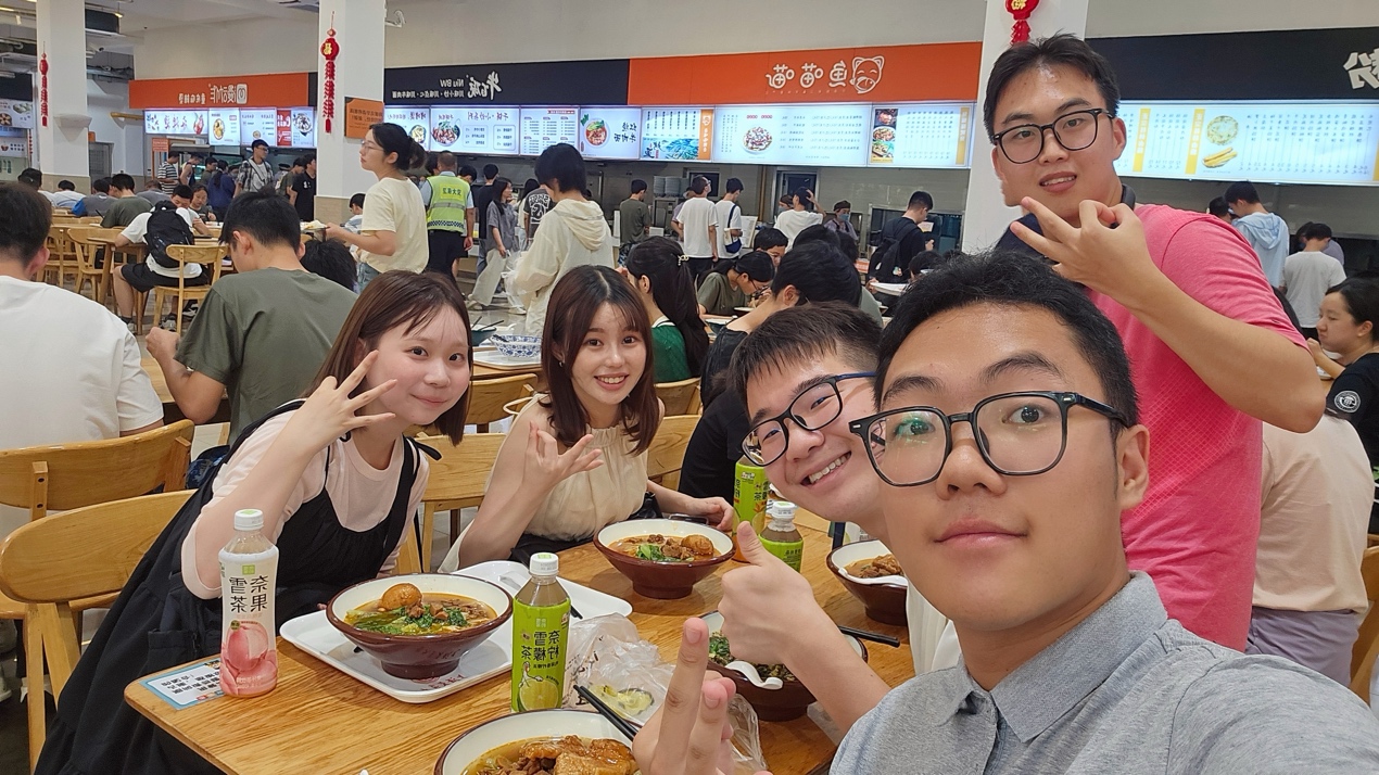 At lunchtime, teachers and students went together to SJTU's second Dining Hall, experiencing the unique atmosphere and various dishes in a Chinese university cafeteria. Amid the steaming food, everyone shared their first impressions of Chinese cuisine and engaged in a lively discussion about eating habits, taste preferences, and campus food culture. Chinese and Japanese teachers and students also talked about the different cooking methods and flavors of common foods such as ramen, rice, and desserts in the two countries, and extended the conversation to cultural differences in family dinners and festival foods.
