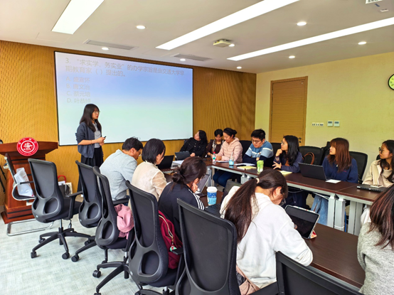 随后,本科生党支部书记华佳开展了沉浸式互动领学,将现场气氛推向高潮。师生们围绕南洋公学创办、西迁壮举等校史片段,以及“求实学、务实业”和“西迁精神”等关键词展开激烈竞答。在以赛促学、以答代讲的互动中,大家深刻领悟了总书记回信精神的历史底蕴与时代内涵。