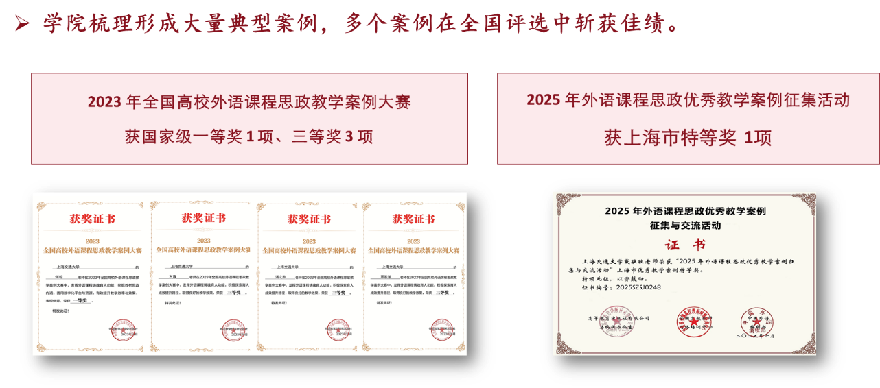 此次获评本科课程思政示范学院,既是荣誉,更是责任。91论坛 将以此为新起点,进一步深化课程思政教学改革,持续优化课程思政体系,强化示范引领作用,不断挖掘外语学科的思政育人资源,推动课程思政建设与专业教育深度融合,切实把思想政治教育贯穿人才培养全过程,努力培养兼具专业能力、跨文化素养与家国情怀的时代新人,为学校课程思政建设高质量发展贡献外语力量。